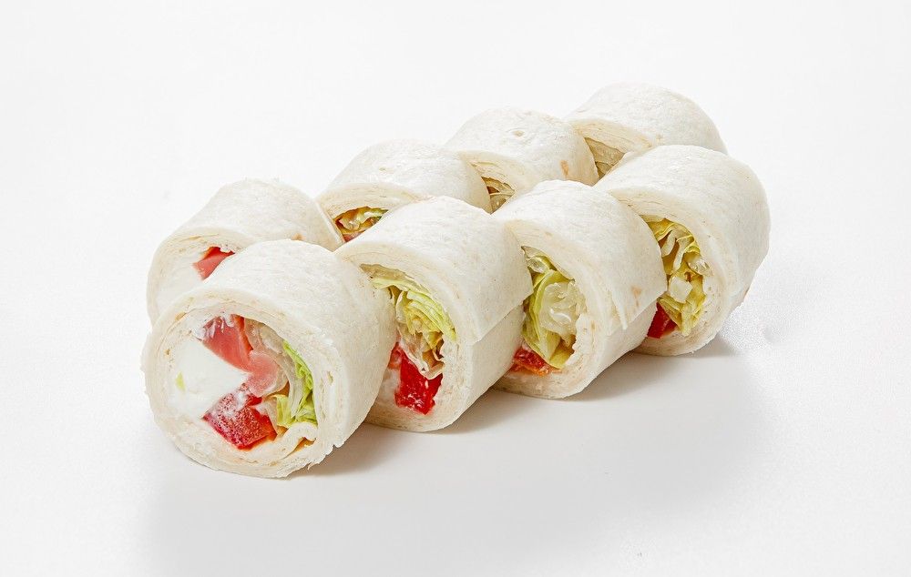 Тортилья, сыр творожный, помидор, салат айсберг, лосось копченный