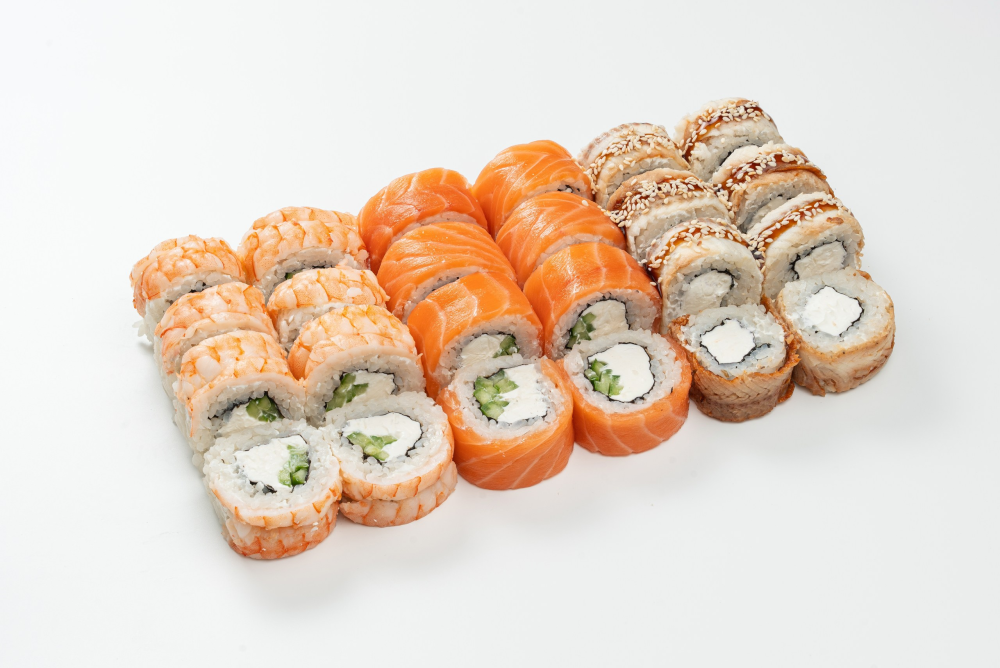 Филадельфия с угрем Филадельфия с креветкой Филадельфия с огурцом 24 шт.