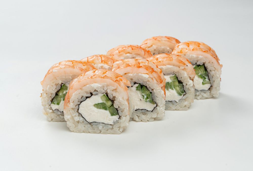 рис,нори,сыр творожный,огурец,креветка тигровая