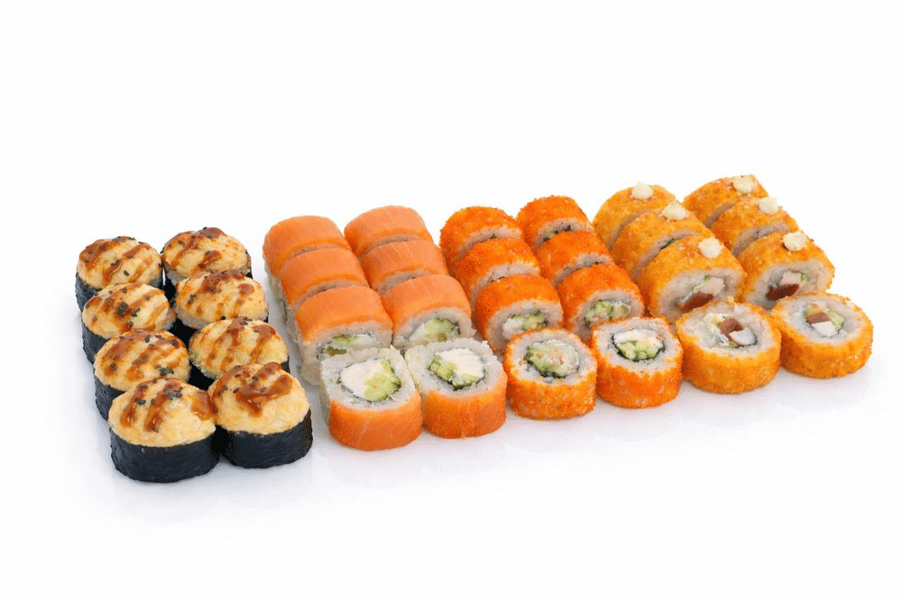 Филадельфия лайт Калифорния с крабом Темпура цезарь Запеченый нежный 32 шт.