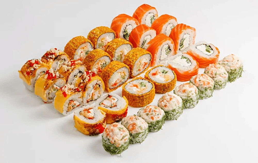 Филадельфия с огурцом Темпура с крабом Нью Йорк Татаки 32 шт.