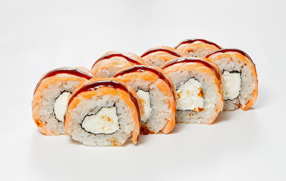 Рис, нори, лосось, сыр творожный, соус bbq